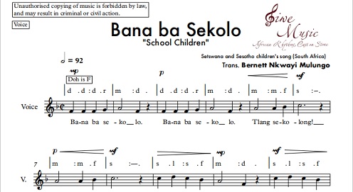 Bana ba Sekolo - "School Children" (Is a nursery rhyme of French origin, adapted into a childrens song by the Batswana and Basotho people of South Africa.